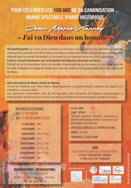 Pour célébrer les 100 ans de la canonisation de Jean-Marie Vianey, grand spectacle vivant historique :